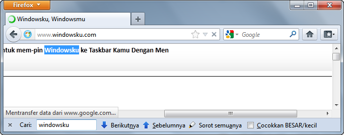 CTRL + Enter, menambahkan "www" di awal kata, dan ".com" pada akhir kata. Sebagai contoh, jika kamu ketik "windowsku", maka setelah kamu tekan CTRL + Enter, secara otomatis menjadi "www.windowsku.com".